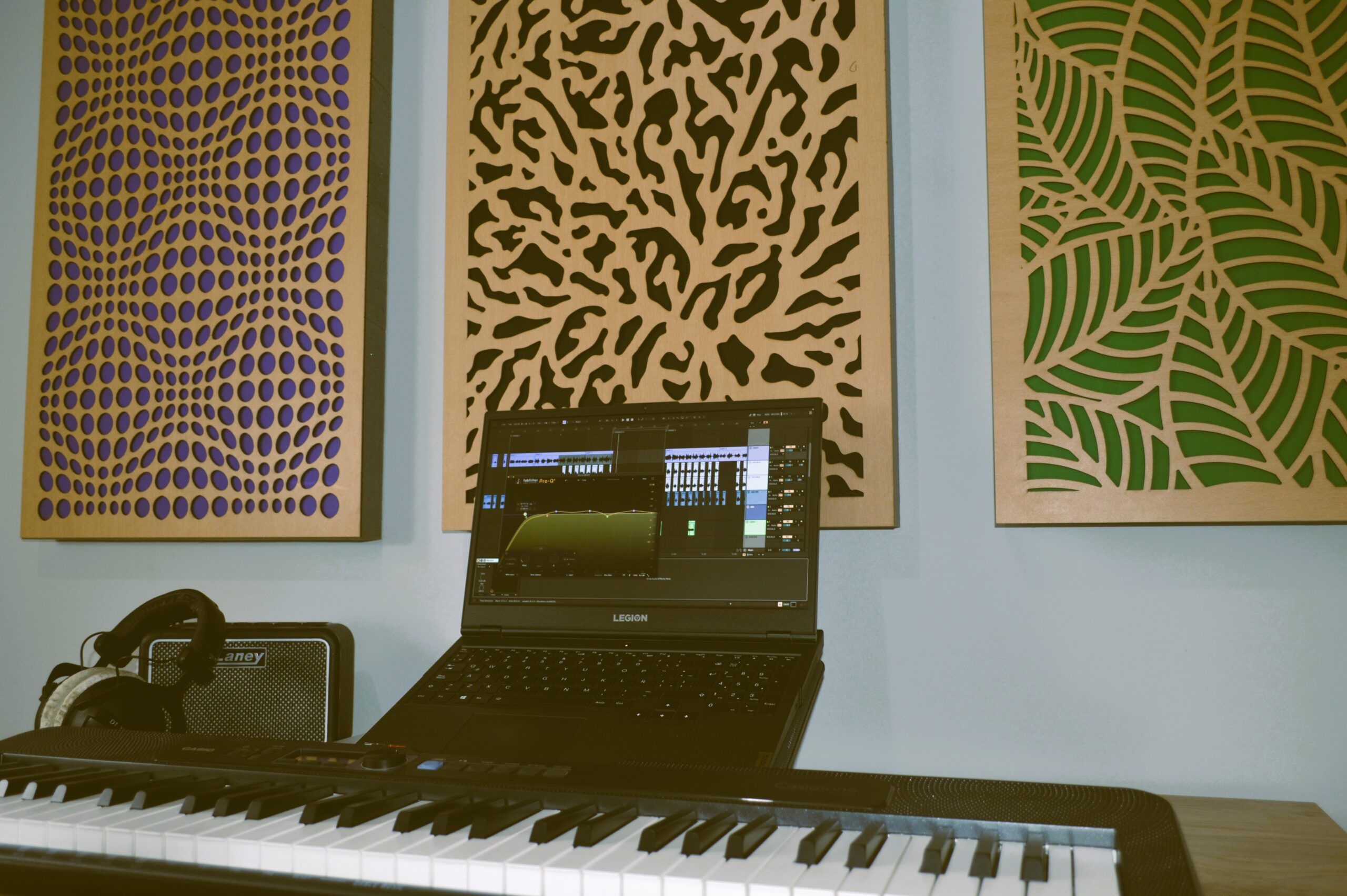 El Panel Acústico Decorativo de AQusticPro integra control acústico y diseño interior en una sola pieza. Su construcción tipo sándwich utiliza un núcleo de espuma acústica de alta densidad que queda expuesto en los laterales y en la parte posterior para maximizar la absorción de energía sonora. En el frente, una tela acústica porosa permite el paso del sonido hacia el núcleo, mientras una tapa de MDF calada a láser aporta rigidez, protección y un acabado premium. El resultado es un panel de banda ancha que reduce reverberación y primeras reflexiones sin sacrificar la estética del espacio.