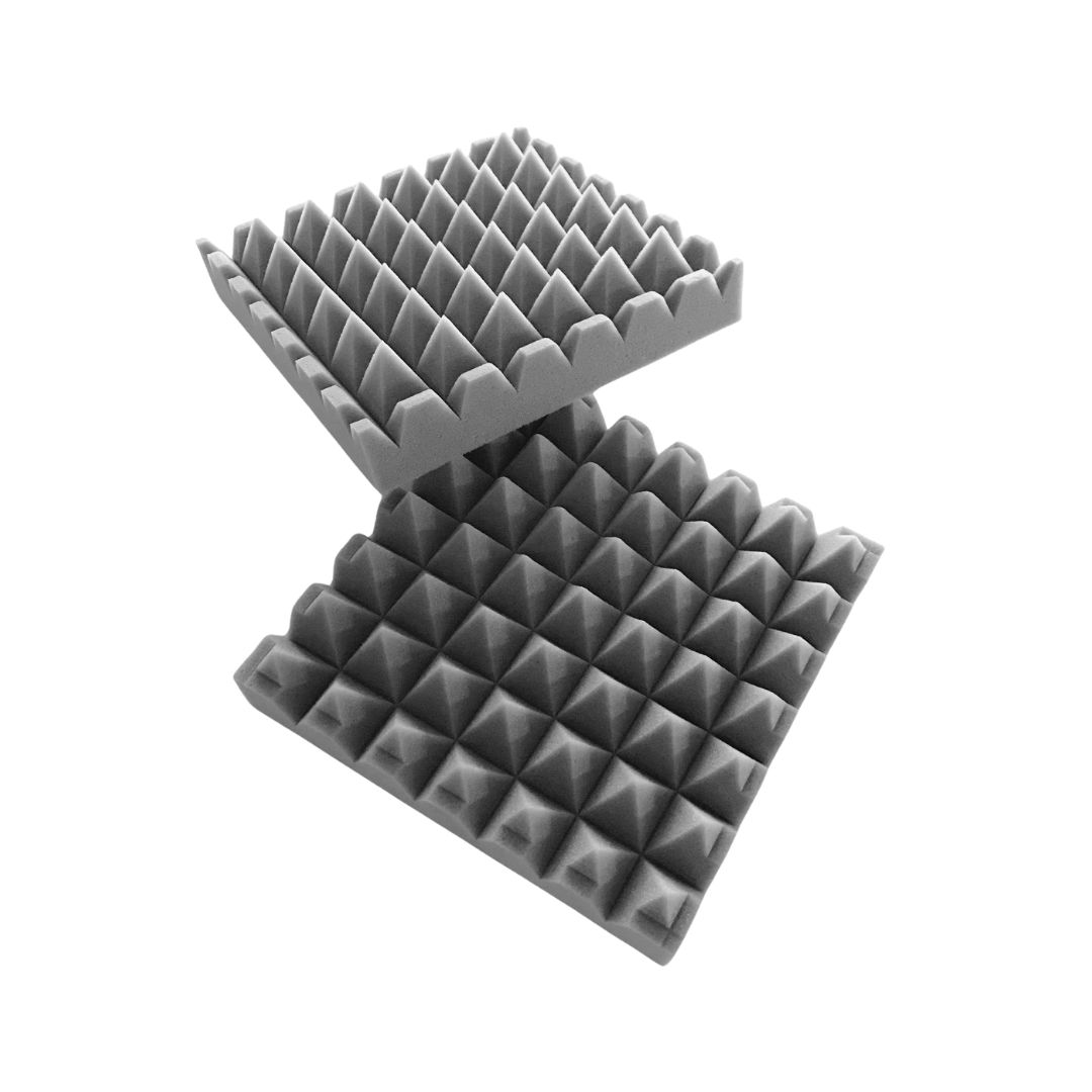 La superficie en cuñas (wedge) genera canales que capturan y disipan energía sonora con gran eficacia, especialmente en frecuencias medias y altas. Orientado correctamente en paredes o techo, este relieve atenúa rebotes directos y mejora la definición de voces e instrumentos en el punto de escucha.